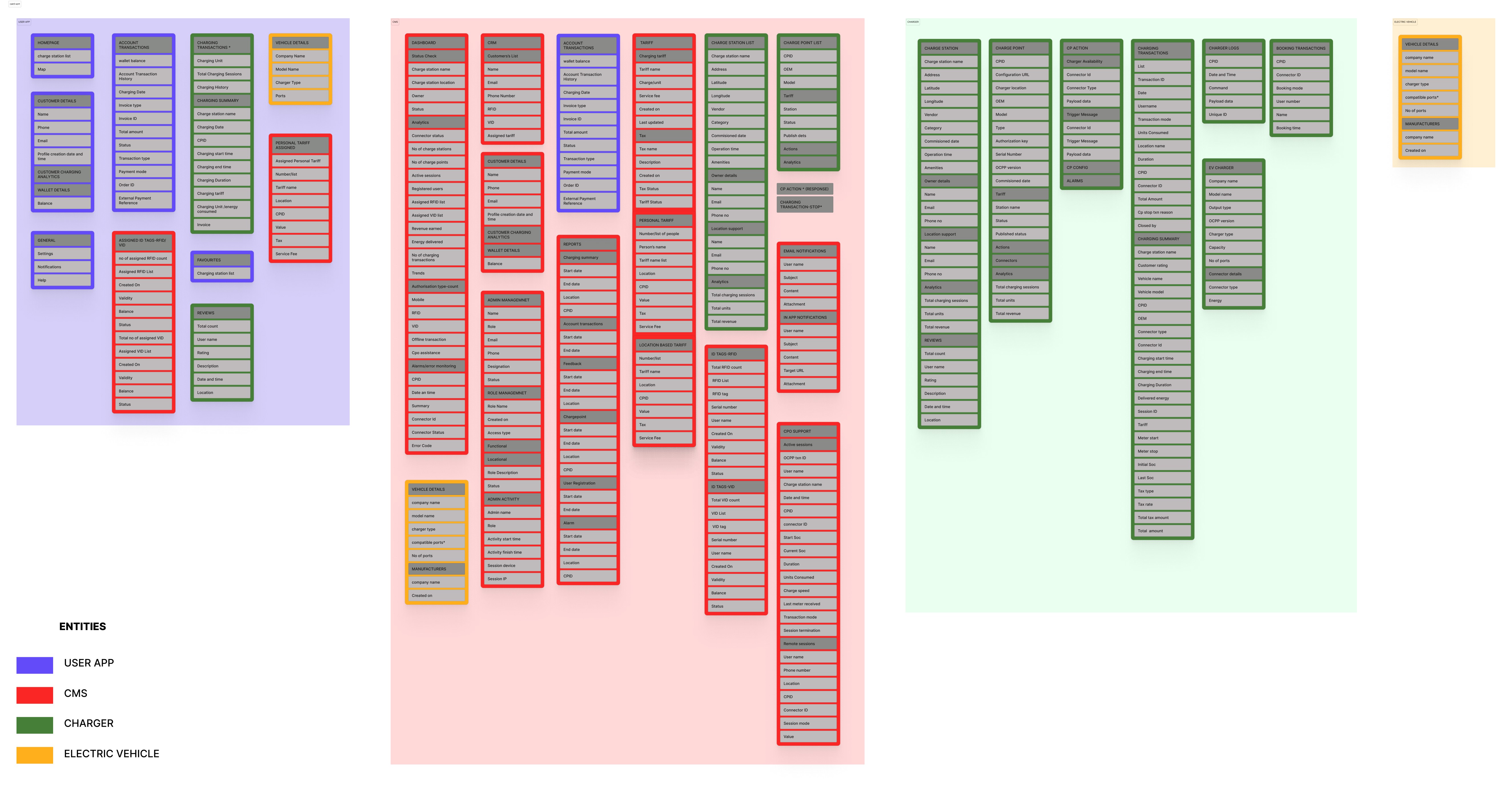 The image visually represents how different entities and their functions interact, using color coding to distinguish them. This structured approach helped in defining the information architecture by mapping relationships, identifying dependencies, and ensuring a well-organized system.